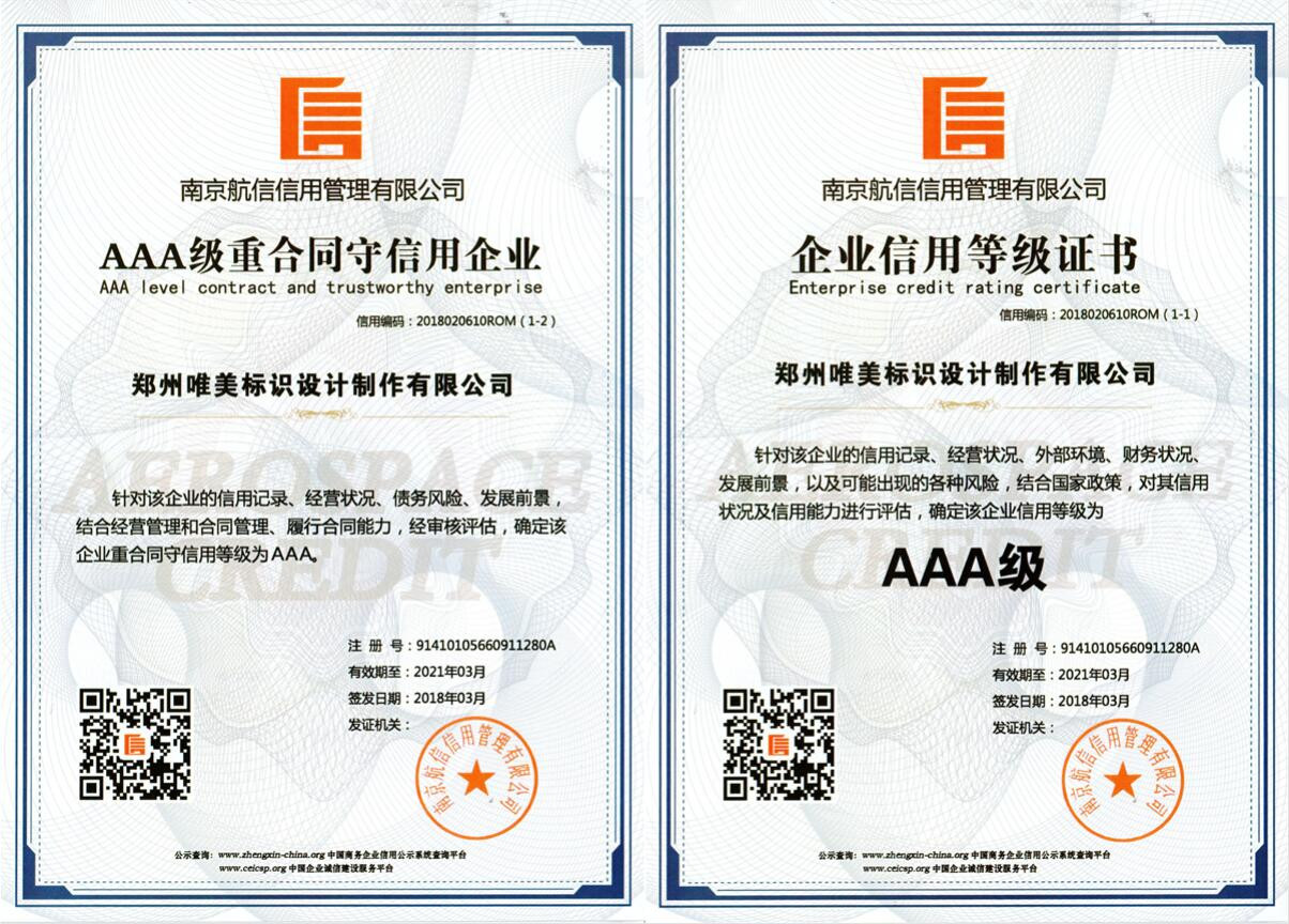 生产制作的每一件产品的原材料严格按照国家标准执行,产品质保最长10年;免费上门服务、免费深化标识设计方案、免费郑州市内送货上门;口碑广为流传、70%客户来自于老客户转介绍;